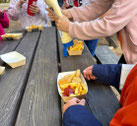 Abendessen mit Pommes und Nuggets im Jugendlager der Jugendfeuerwehr