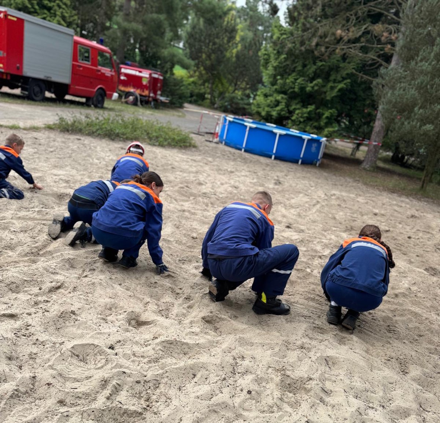 Jede Wachbesetzung übernahm jeden „Einsatz-Tag“ die Fahrzeuge und überprüfte diese auf Vollständigkeit. Diese Gruppen fuhren mal einen „Einsatz“ und mal auch 3-4. Diese Einsätze waren natürlich gestellt und auf die Altersgruppe der Kids angepasst.